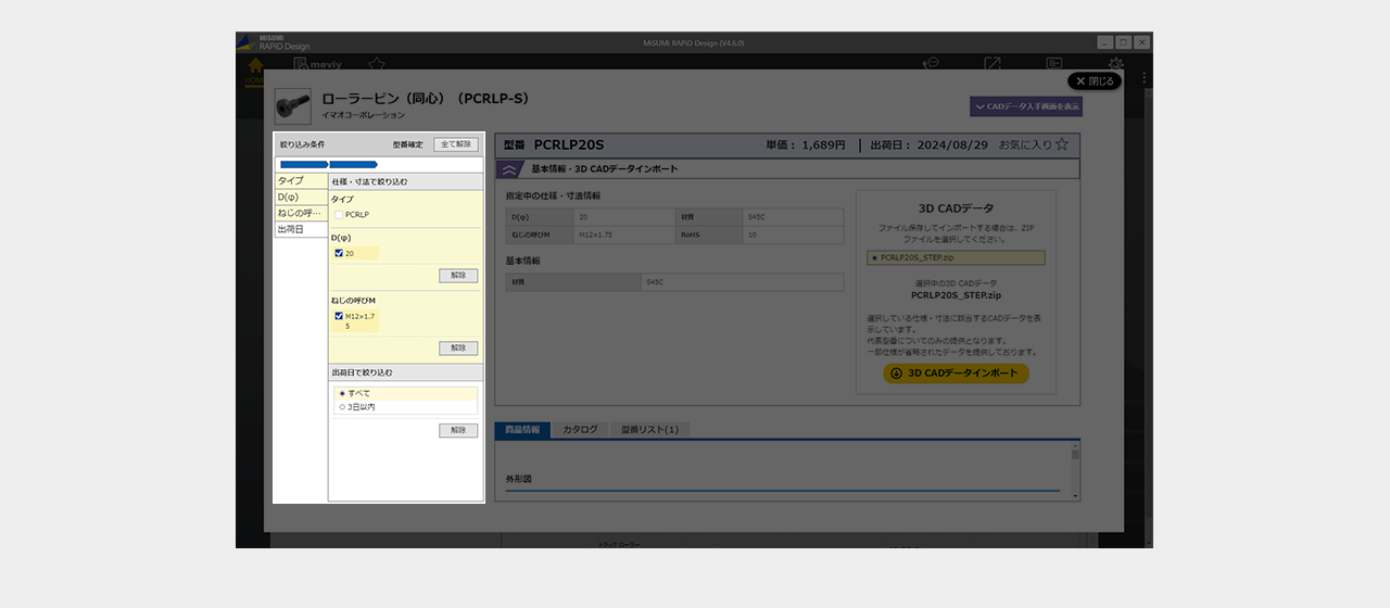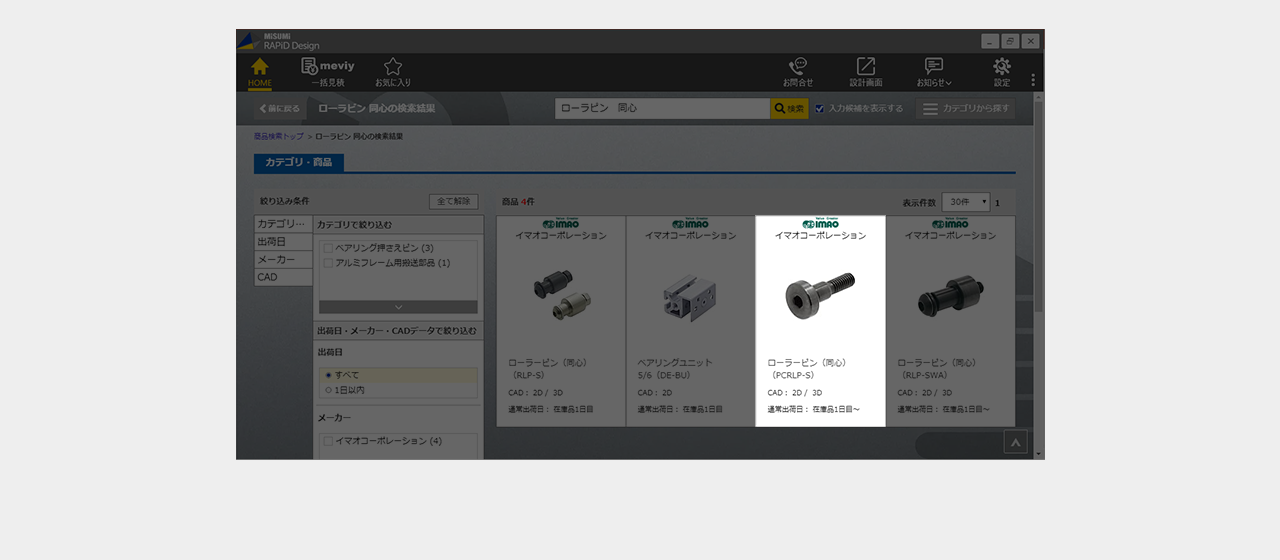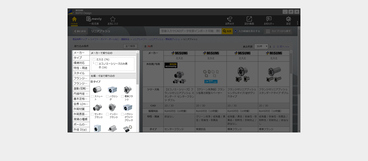 ミスミ以外のメーカー品は検索画面で全ての仕様を選択し型番を確定