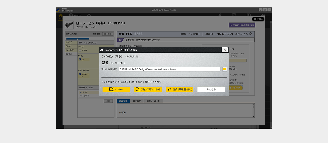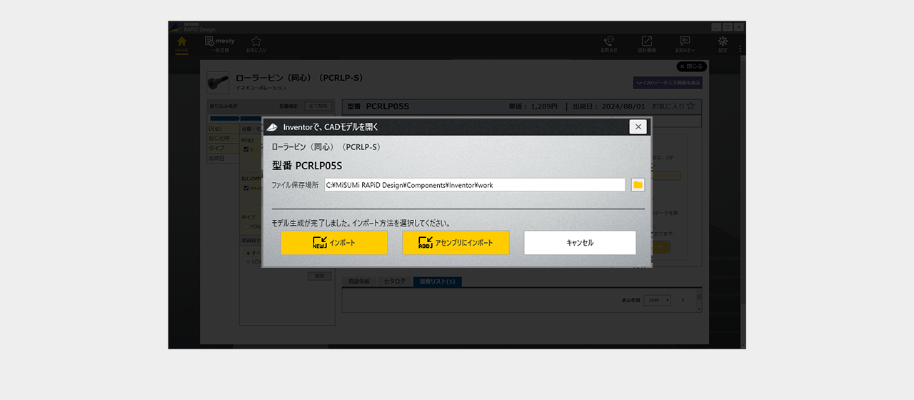 ファイルの保存場所を選択後3D CADデータインポートをクリック