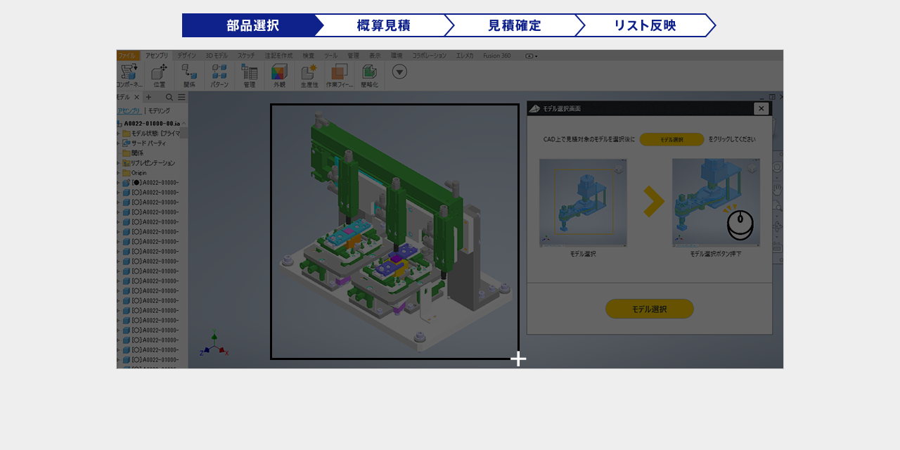 モデル選択ボタンをクリックし、見積もりたい部品を選択